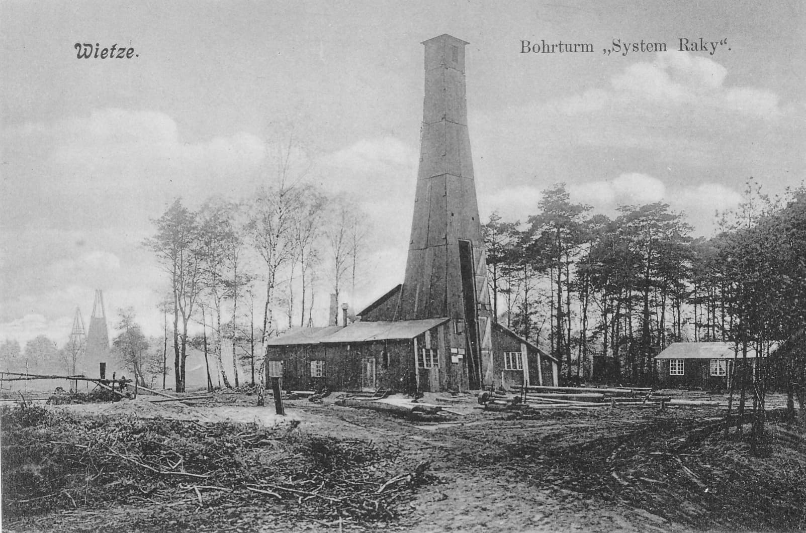 verkleideten Raky-Bohrturmes war in der frühen Zeit der Wietzer Erdölgeschichte