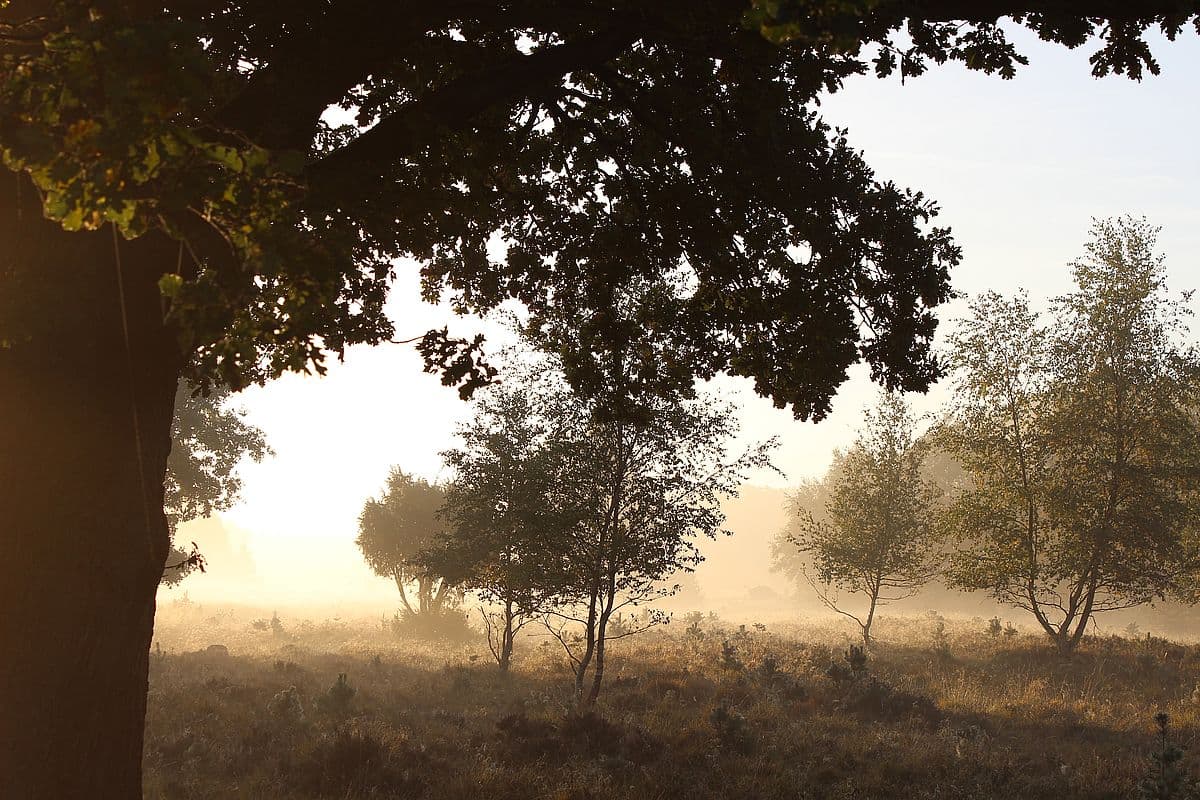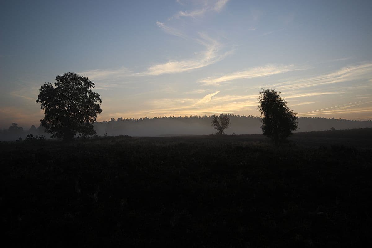 Nebel verschleierte die Heideflächen und die Bäume. Zahlreiche vom Tau benetzte Spinnennetze waren zwischen den Heidepflanzen sichtbar. Es wirkte geheimnisvoll und auch ein wenig unheimlich. Insbesondere an dem moorigen Pastorenteich. Meine Tochter fand es großartig, sie hüpfte und sprang umher. Ich glaube sie fühlte sich wie bei „Harry Potter“.