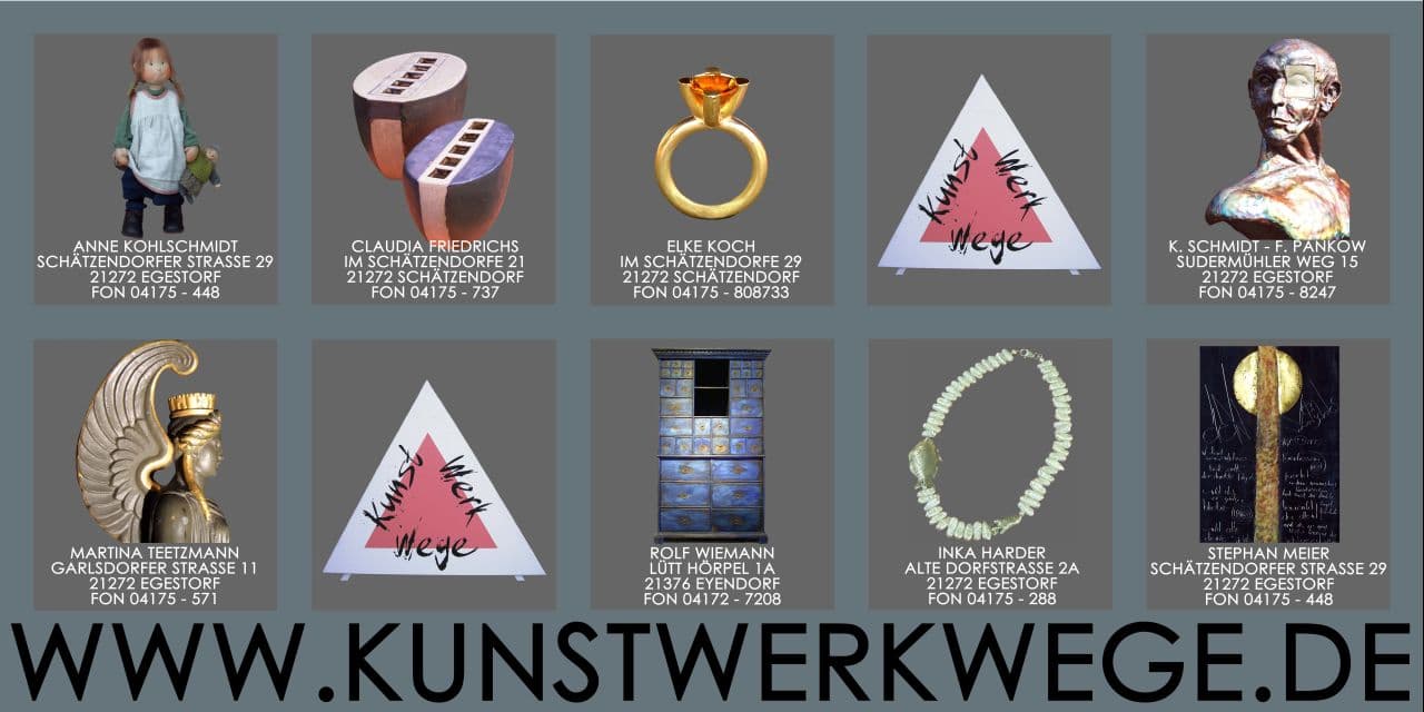 Die KunstWerkWege wurden gegründet, weil in Egestorf und drumherum sich etliche KünstlerInnen und KunsthandwerkerInnen niedergelassen hatten, die - jede und jeder für sich - immer wieder Haus-, Werkstatt- und Atelierausstellungen veranstalteten, sich aber irgendwann sagten, dass der Aufwand, der für diese vielen kleinen Ausstellungen getrieben wurde, viel sinnvoller wäre, würde man dies alles in einer großen Ausstellung mit allen zusammen bündeln können. Immerhin sind alle - Bildhauer, Goldschmiede, Keramiker, Maler, Möbelrestaurateure, Puppenmacher, Vergolder - hauptberuflich in ihren jeweiligen Metiers tätig, da muss man schon überlegen, wofür welcher Aufwand sich zu treiben lohnt...