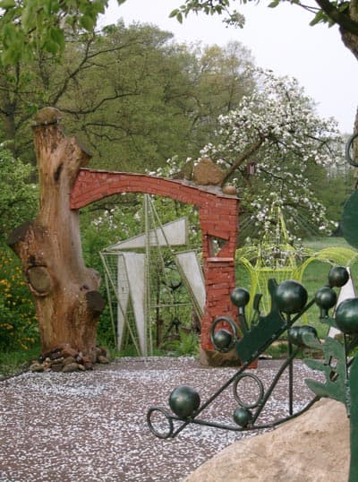 Im Garten des Müdener Künstlers Hans-Peter Brammer sind in einem harmonischen Zusammenspiel mit der Natur verschiedene Kunstobjekte aus Holz und Eisen zu besichtigen.