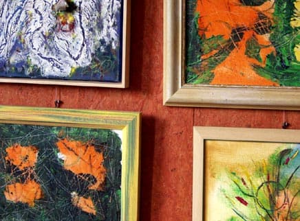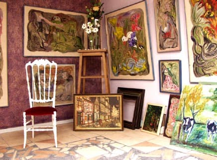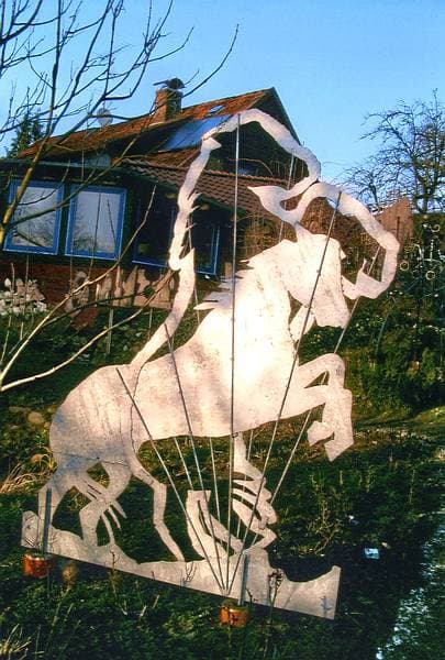 “Die Wege aus dem Alltag eröffnen” – Hans-Peter Brammers Kunstobjekte fügen sich fröhlich, schrill oder skurril, mal aus Eisen oder Holz in seiner naturbelassenes ca. 1400 m2 großes Gartengelände ein. Der Garten schließt sich zur einen Seite an eine Galerie, mit über 200 eigenen Ölgemälde an, die durch einen lebhaft Pinselführung und Eigendynamik bestechen.