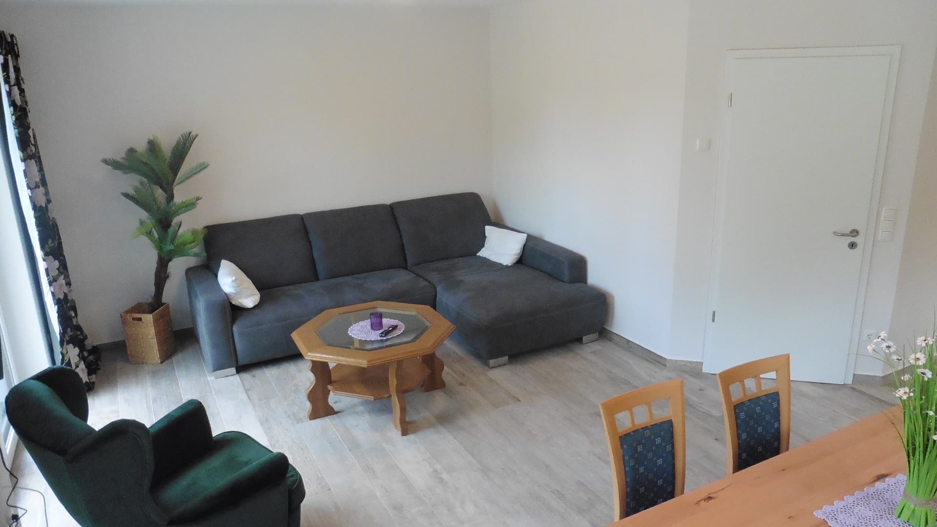 Es handelt sich bei der Ferienwohnung um eine Doppelhaushälfte, diese ist mit 3 Schlafzimmern ausgestattet und bietet Platz für 5 Personen. Es ist ein Bad mit Dusche und Badewanne und ein Gäste-WC vorhanden. Die gut ausgestattete Küche mit großzügigem Essbereich und angeschlossenem Wohnzimmer bietet viel Wohlfühlatmosphäre. Von hier gelangt man auf die großzügige Terasse mit Garten und Apfelbaum.