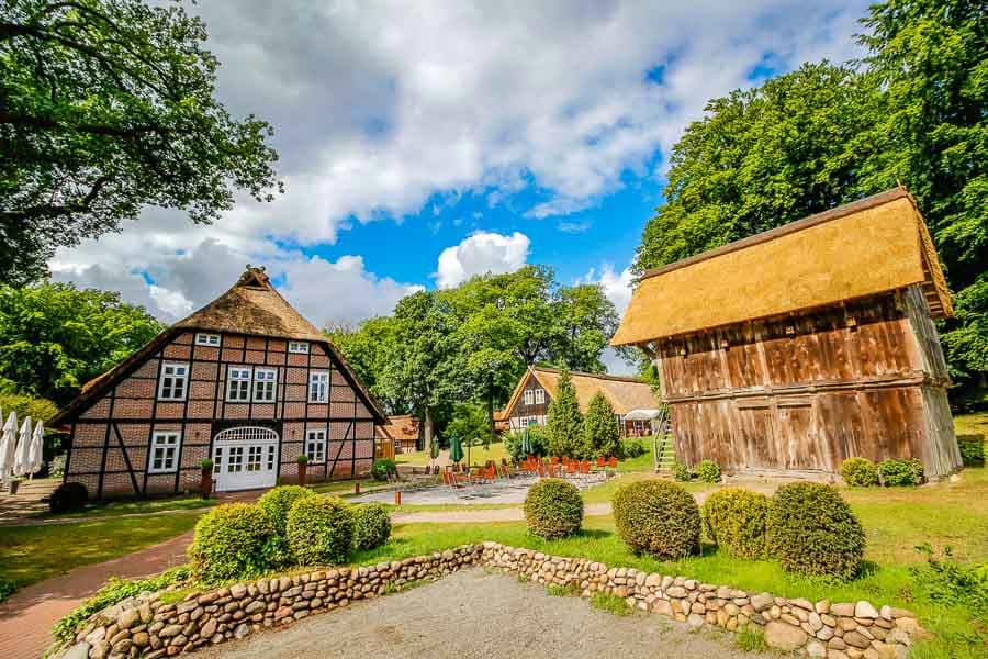 Schlafen direkt unter Reet in einem niedersächsischen Denkmal. Im modern-charmanten Landhausstil sind alle der 27 Zimmer & Suiten gehalten, wobei alle individuell gestaltet sind. Denn die Zimmer & Suiten sind mit viel Detailtreue in die teilweise über 100 Jahre alten Gemäuer des Hofensembles eingefasst. Naturbelassenes, offenes Gebäude, Sprossenfenster und dezent knarrende Dielen dürfen dabei nicht fehlen. Elegante Einrichtungs- und Dekorelemente verleihen jedem Zimmer eine heimelige Atmosphäre.